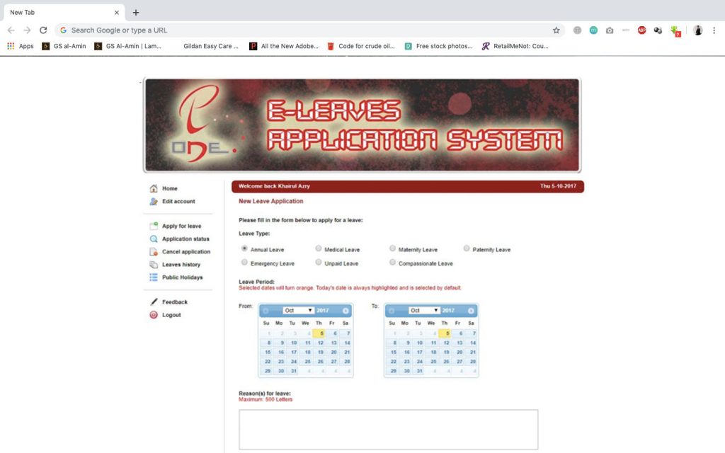 E-Leaves Application System is an online system where employee can directly check leave balance, apply for leave, check leave status and more just through a web browser. This system develop specially for Portal One Sdn Bhd, the company I’ve done my internship before. The objective of this project are to build an eco-friendly system, accuracy of database and updated & reliable presented data.